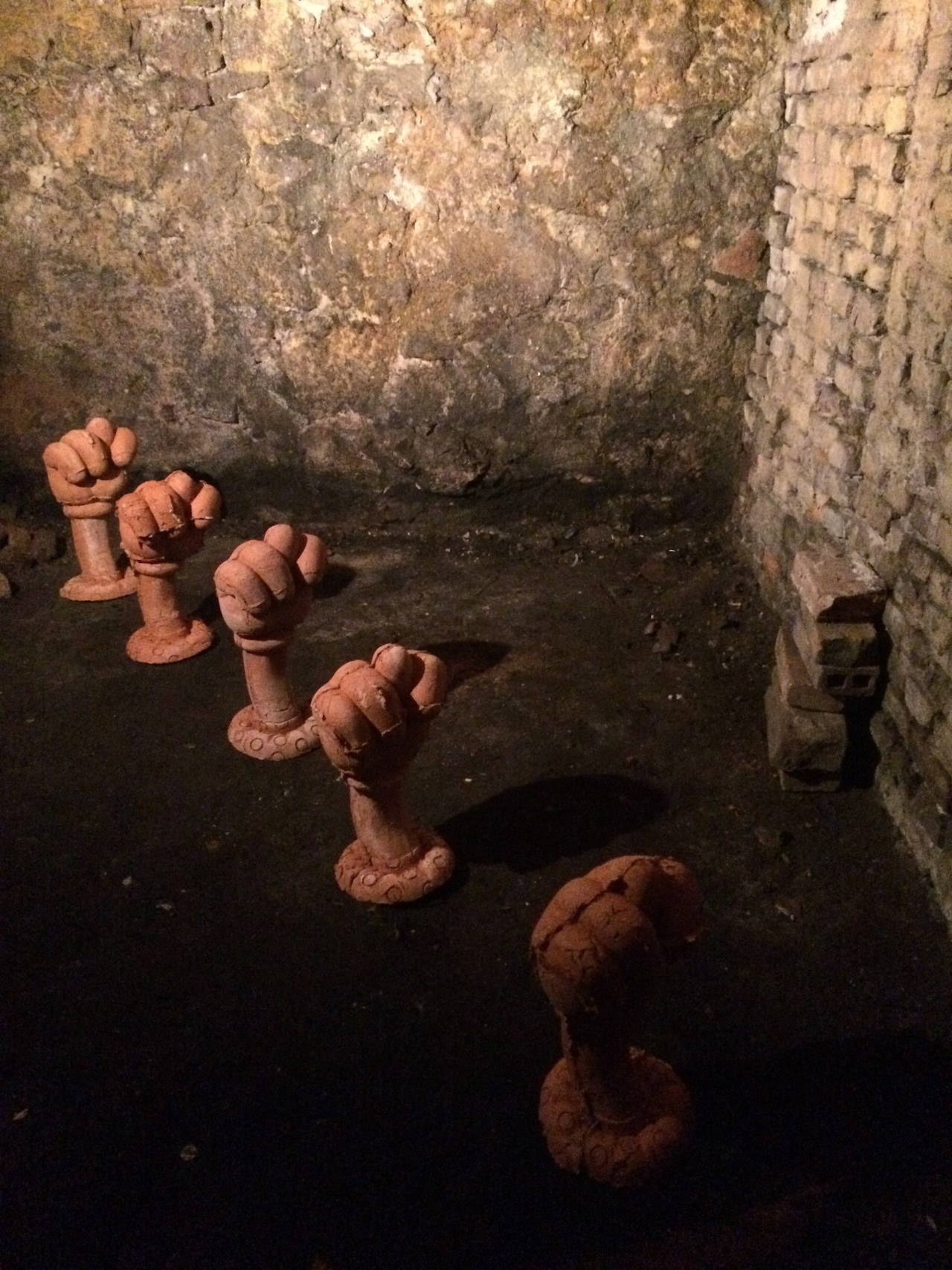 The title and the material structure refer to the Terracotta Army of Soldiers buried in the tomb of the first Chinese emperor Qin Shi. Group exhibition “Zmierzchnica” at Cellar Art Gallery, Cracow.