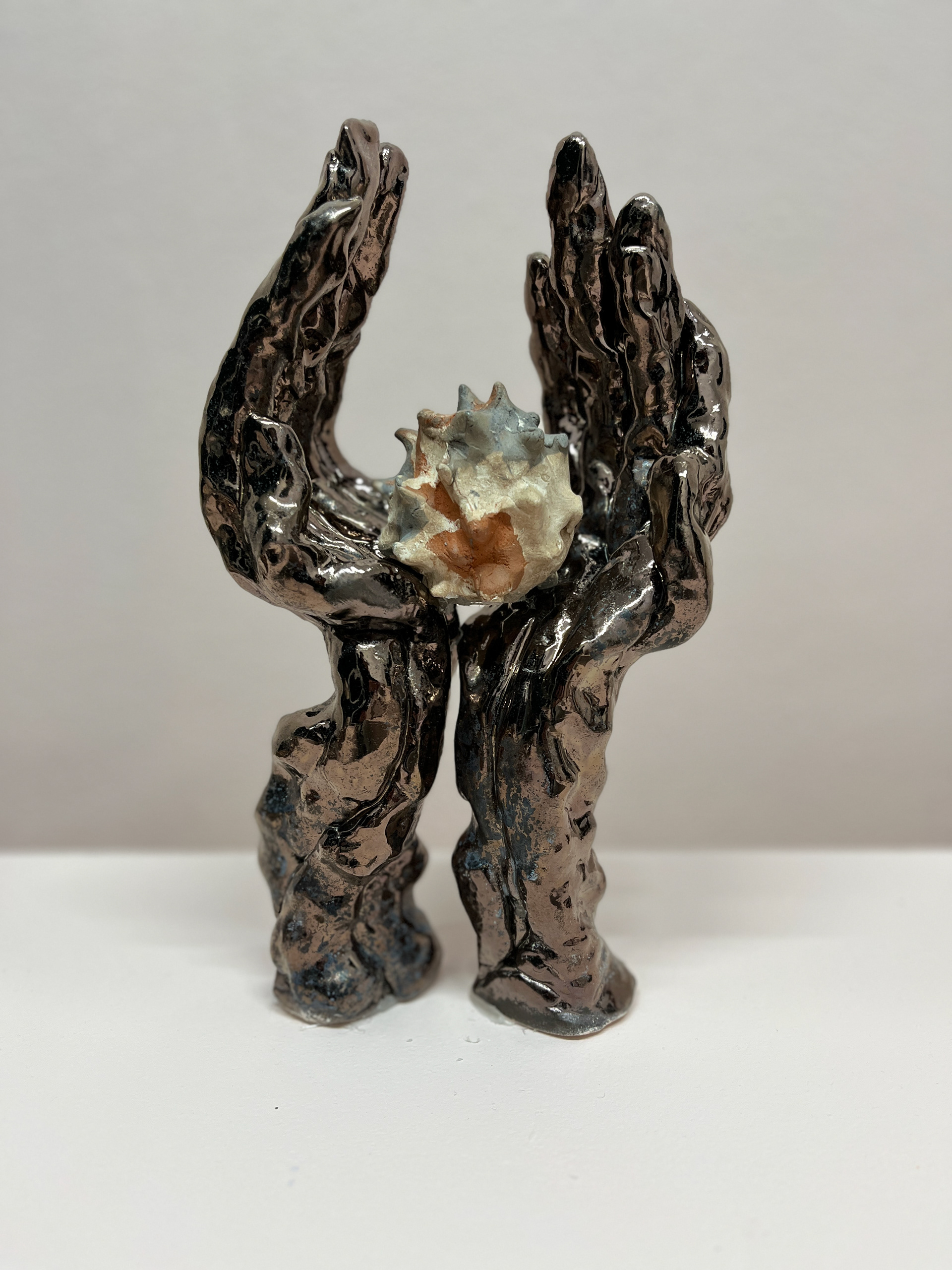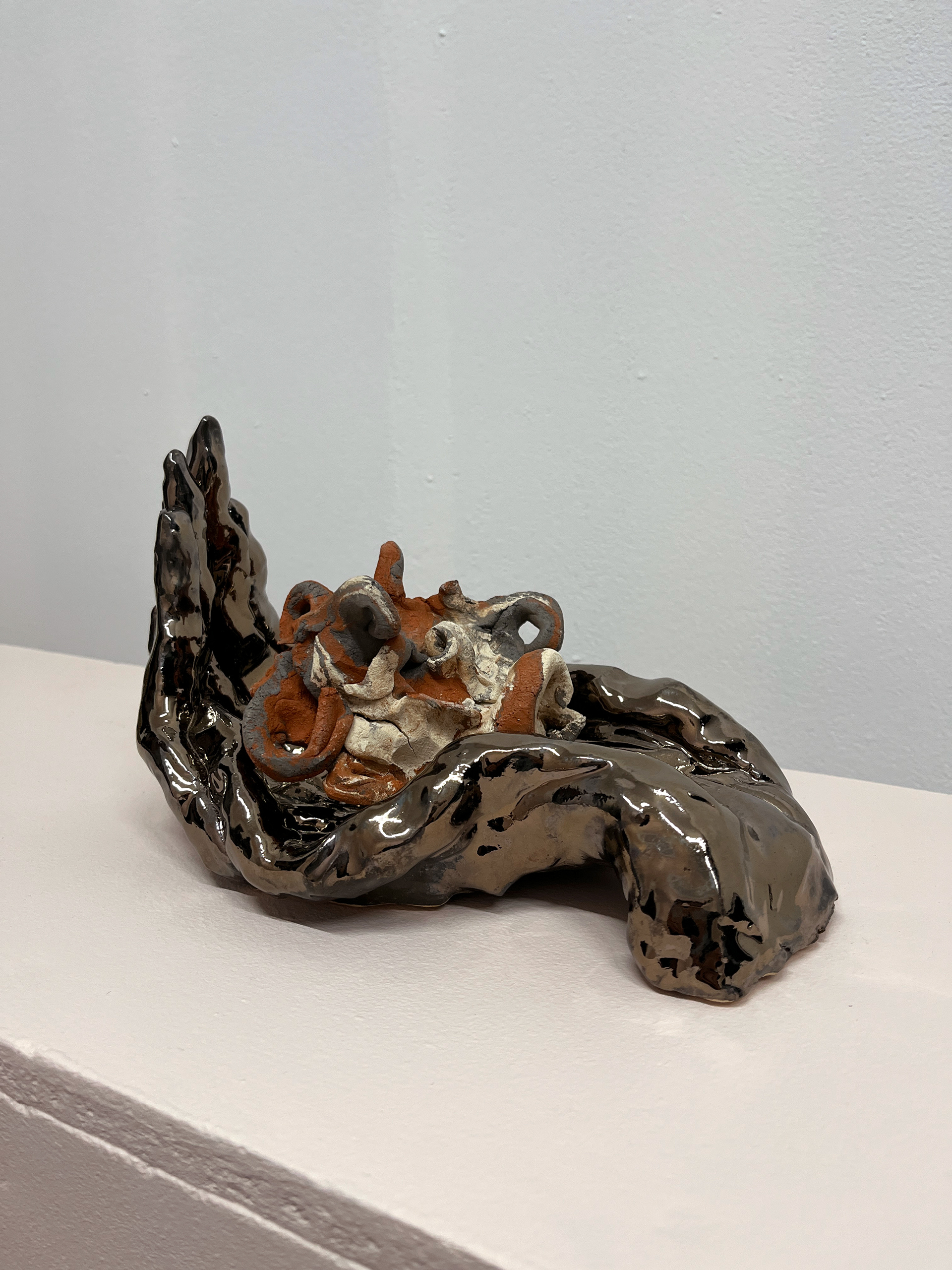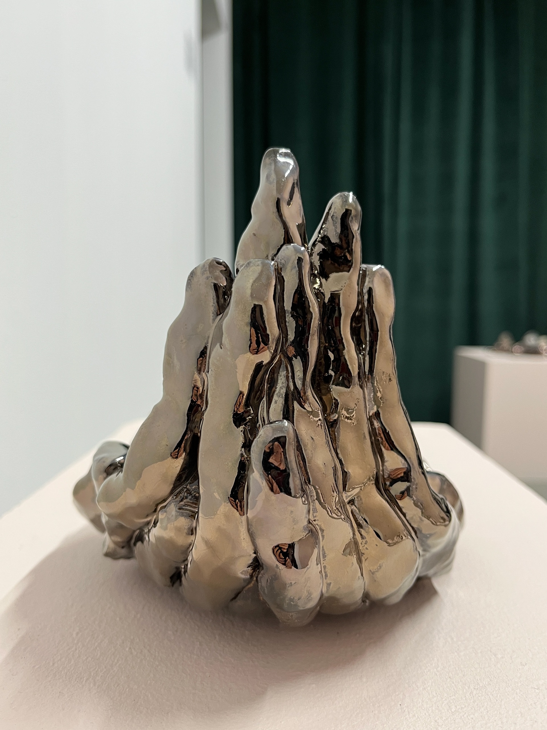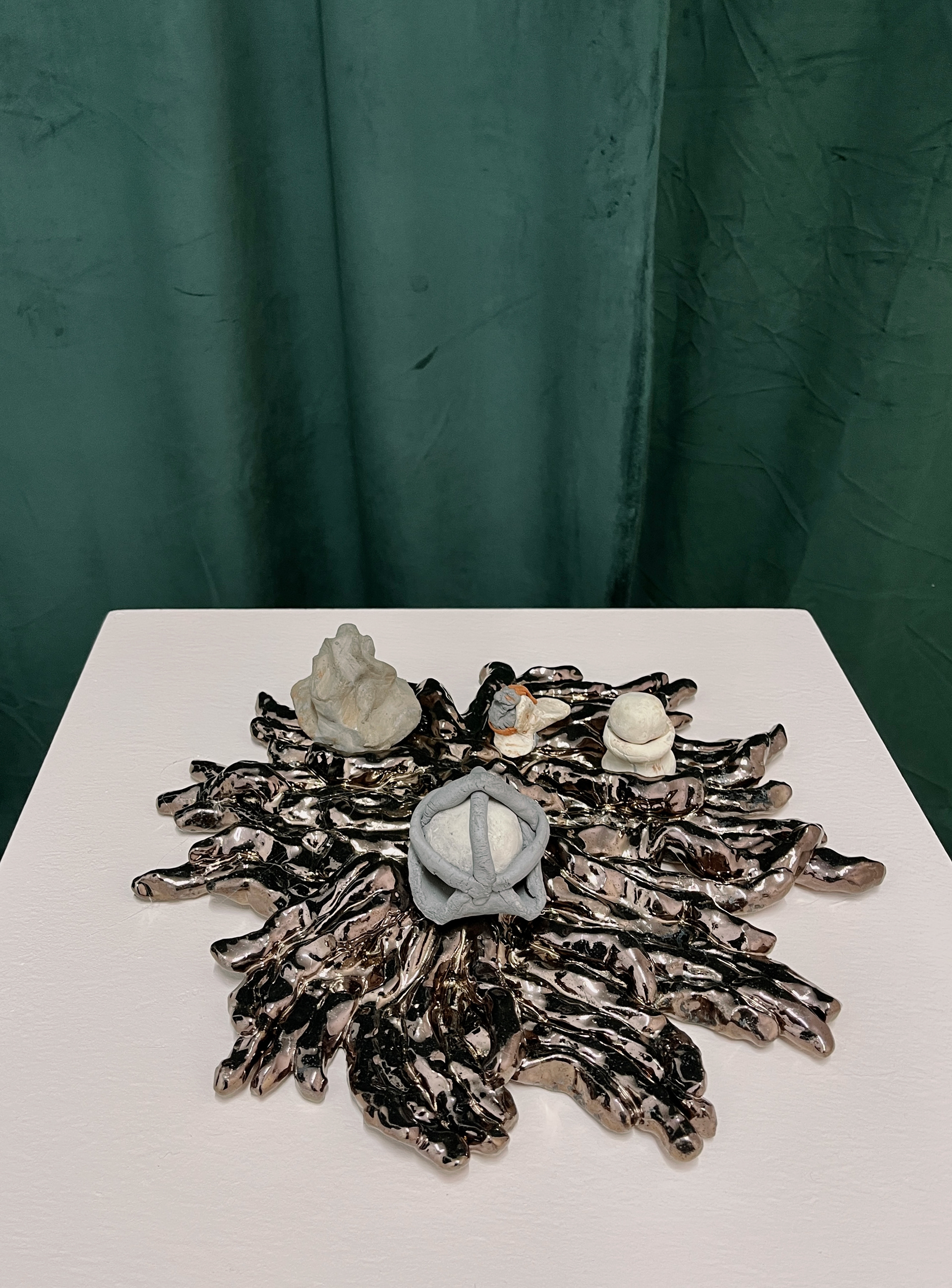 Antypodręcznik. Jak zbudować niewidzialne miejsce? Wystawa zbiorowa w CSW Kronika. 18 listopada 2023 ‒ 12 stycznia 2024 Kuratorka: Marta Lisok Współpraca kuratorska: Dominik Ritszel, Jolanta Jastrząb (…) Ekspozycja stawiała nacisk nie tylko na wrażenia wizualne, ale także słuchowe, dotykowe i zapachowe. Artyści i pacjenci za pomocą zmysłów starali się definiować wrażenia płynące zarówno z ich świadomości, pamięci, jak i ciała. Realizacja Naczynia (2023) stanowiła zapis działań Natalii Kopytko z podopiecznymi szpitala. Narzędziem pracy artystki i uczestników stała się glina. Pacjenci tworzyli formy inspirowane bezoarami, które powstają w żołądkach ludzi i zwierząt w wyniku niestrawionych włókien, włosów czy nawet leków. W średniowieczu przypisywano im magiczne i lecznicze moce. Współcześnie traktowane są jako jedne z symptomów zaburzeń odżywiania. W kontekście działań artystki, odzwierciedlają one formy napięć w ciele. Kopytko umieściła prace swoich podopiecznych w naczyniach przypominających kształtem ludzką dłoń, co szczególnie podkreślało taktylny, haptyczny wymiar jej działań z pacjentami, akcentując w ten sposób terapeutyczny charakter dotyku. (…) Zuzanna Sokołowska, Linia Prosta magazine
