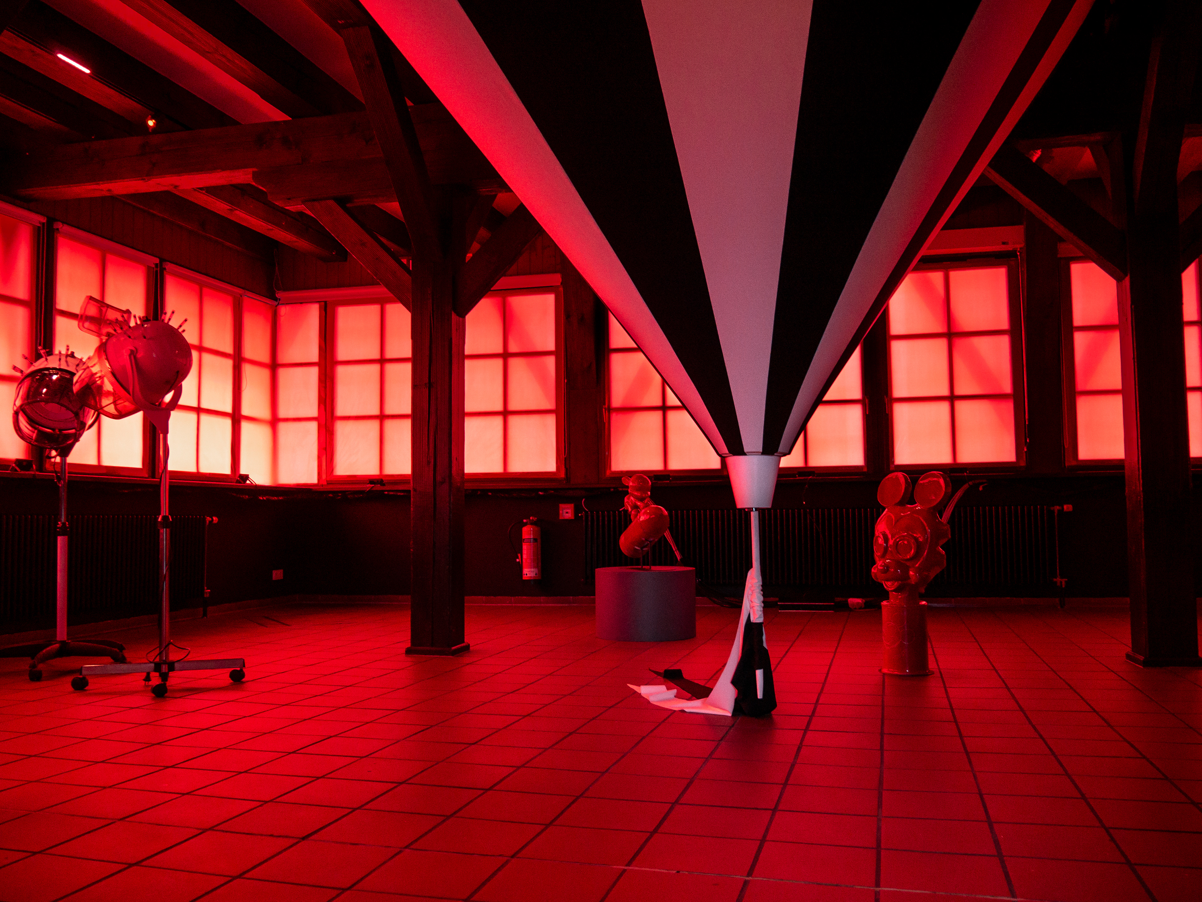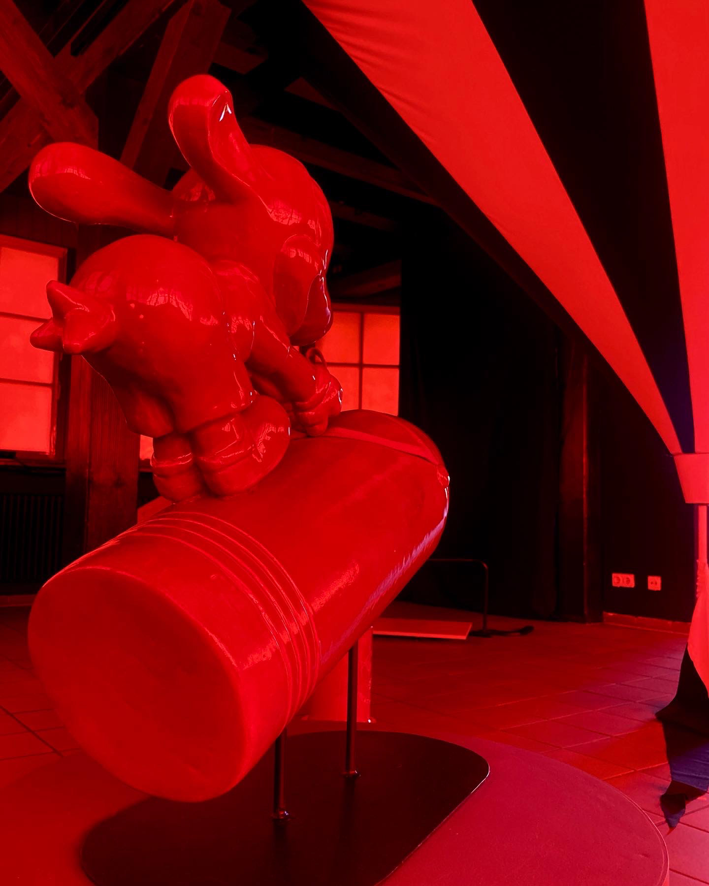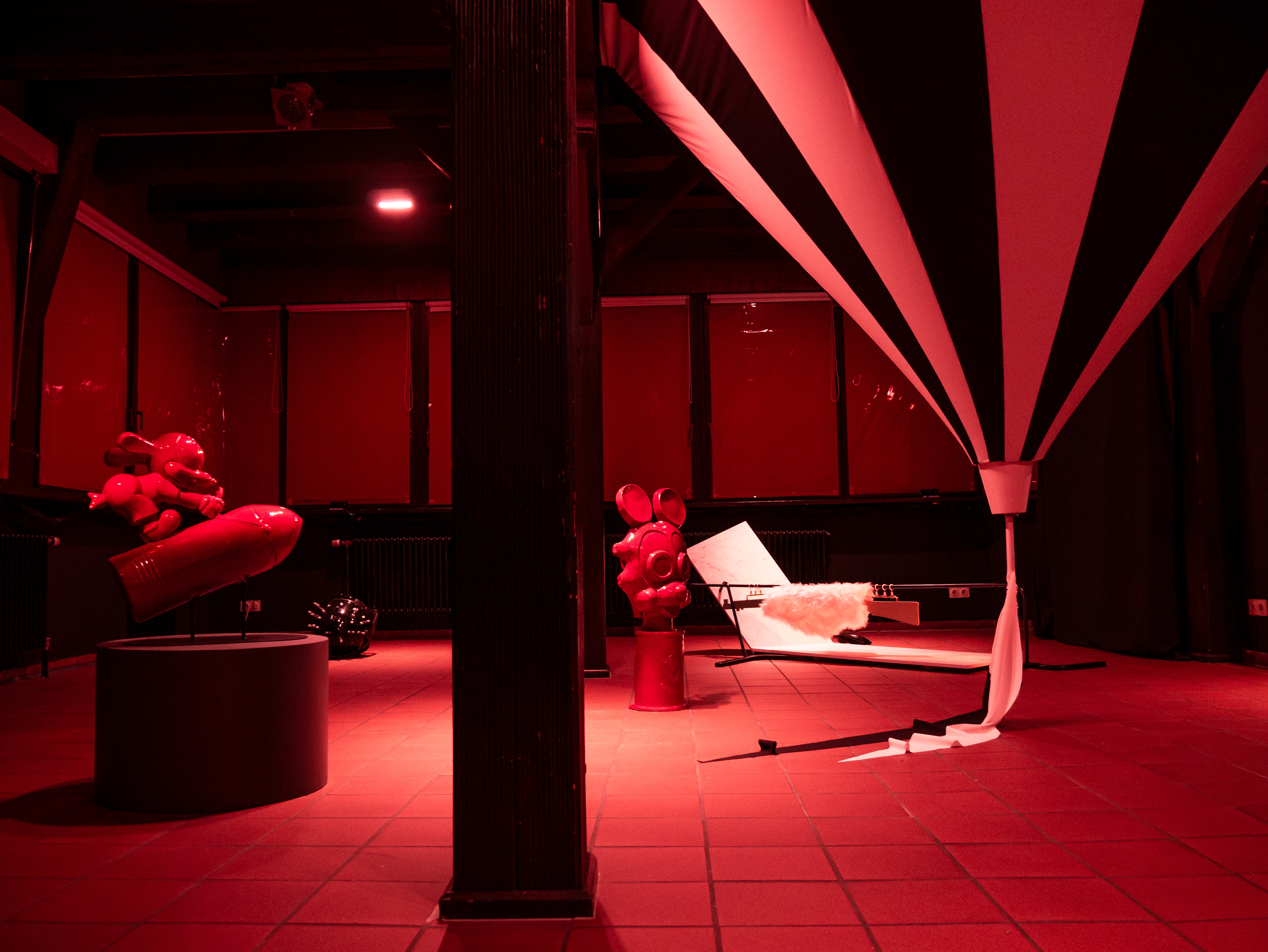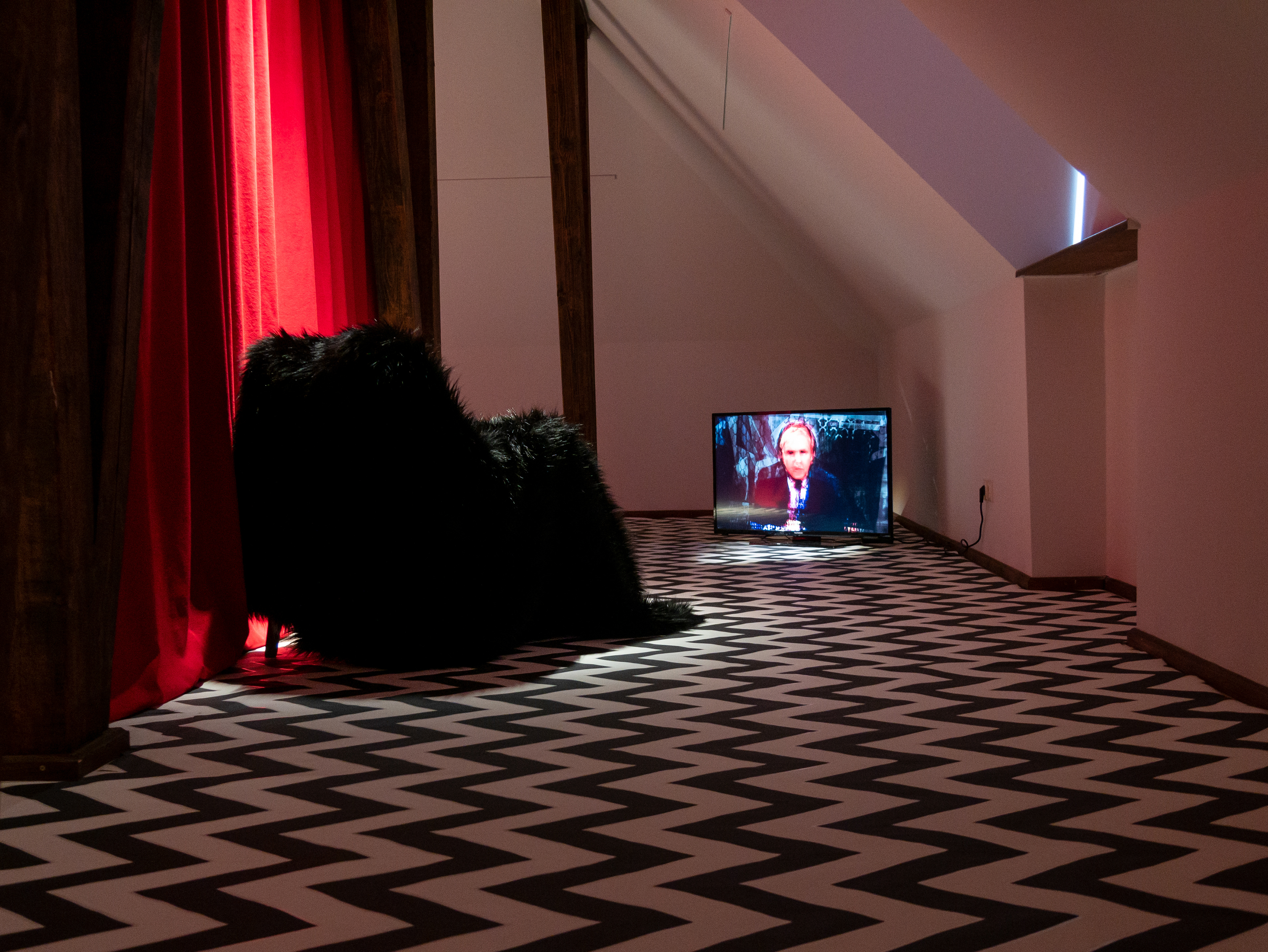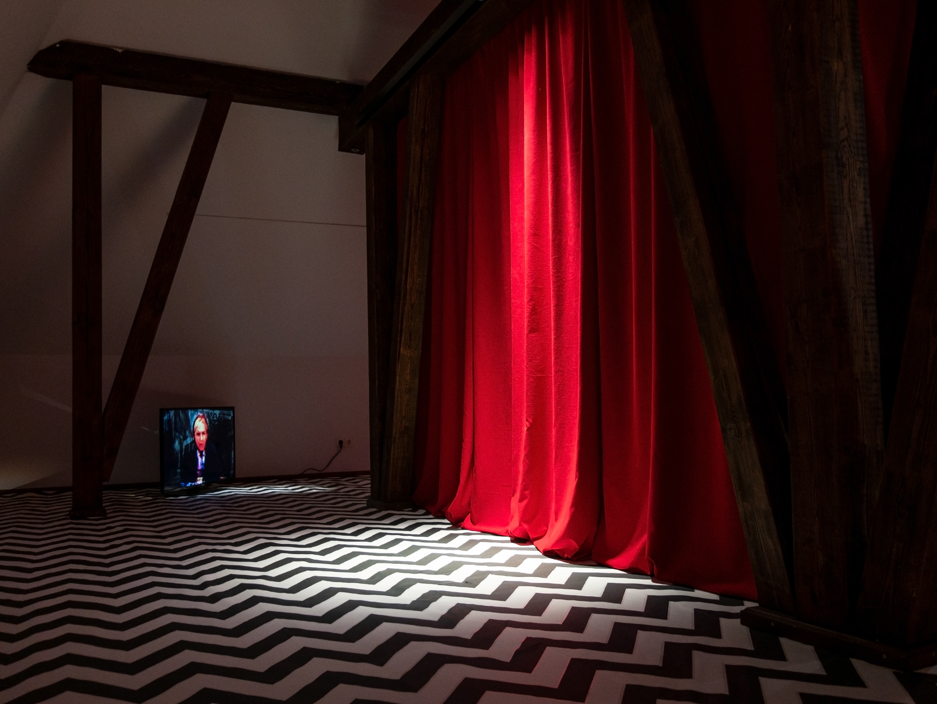 O.W.L. Kolektyw: Natalia Kopytko, Tomasz Bugajski, Marcin Sipiora, Bartek Węgrzyn. Tytuł wystawy prezentowanej w Domu Krakowskim, w Norymberdze nawiązuje wprost do filmu Roberta Benigniego o tym samym tytule: „La vita e bella”, który opowiada historię ojca i syna uwięzionych w obozie koncentracyjnym. W koncepcji wystawy tytuł ten ma wiele znaczeń: jest zarówno hasłem propagandowym, pokrzepiającym stwierdzeniem, jak i walecznym zawołaniem. Dla małego chłopca Giosue cierpienie panujące w obozie jest konsekwencją ponoszoną za nieumiejętne granie w „grę” a pobyt w obozie tłem rozgrywki o wspaniałą nagrodę. Z dzisiejszej perspektywy zastanawiające jest to czy postępowanie jego ojca Guida na pewno pomogło synowi, czy było moralnie uzasadnione, czy mistyfikując rzeczywistość, faktycznie przyczynił się do ocalenia swojego syna. Guido postępował zgodnie z ogólnie znanymi zasadami propagandy: odwoływał się do emocji małego chłopca, stworzył etos zwycięzcy, manipulował faktami, miał ukryty cel. Porównując zachowanie Guida z „drugą stroną”, czyli z nazistami możemy dostrzec podobieństwa w stosowaniu propagandy oraz inwigilacji, która w III Rzeszy wraz z całą narracją o jedynej, słusznej nacji, czystej i silnej narodowościowo opanowała umysły milionów ludzi. Artyści zwracają uwagę na istotę propagandy jako narzędzia oraz jej szeroki horyzont rażenia, który obejmuje nie tylko dorosłych, ale również a być może przede wszystkim dzieci, które są szczególnie podatne na zewnętrzne wpływy i łatwo jest w nich zaszczepić wizję, szczególnie taką, która jest konsekwentnie dualistyczna. Takie podejście realizowane było zarówno w koncepcji Hitlerjugend, jak i w antynazistowskich, propagandowych animacjach Walta Disneya Warner Brothers oraz rodem ze Związku Radzieckiego i Japonii, w których przedstawiano czarne charaktery z cechami zwierząt takich jak świnia, kaczka czy wilk naprzeciw prawym orłom, łabędziom i jeleniom. Wszystko po to, aby dotrzeć do jak najszerszej publiczności nieograniczonej wiekowo i stworzyć obraz jednego, wspólnego wroga. Ostatecznym celem jest „Rząd Dusz”, czyli sprawowanie ciągłej kontroli nad narodem, który ma bezkrytycznie i lojalnie spełniać wielką wizję. Dzisiaj propaganda nadal ma się dobrze i jest głównym orężem wpływowych kręgów ludzi. Poszerzony wachlarz narzędzi o: dezinformację, fake news, deep fake, specjalne operacje, marketing, influencing oraz rozwój technologi IT, oraz social media sprawia, że coraz trudniej jest nam ją rozpoznać. W swojej koncepcji artyści zgodnie z wypracowaną metodologią stworzyli instalację site-specific uwzględniającą wyrazisty charakter wnętrza dwukondygnacyjnej galerii Domu Krakowskiego znajdującej się w średniowiecznej baszcie. Używając cytatów z pop-kultury i kinematografii budują dualistyczny świat skąpany w czerwonym świetle, które wprowadza do wnętrza hipnotyczną atmosferę snu, koszmaru, natomiast na zewnątrz alarmuje rotującym sygnałem świetlnym niczym sygnalizator służb ratunkowych. Oglądając instalację, odnajdziemy cytaty z propagandowych animacji sowieckich, Walta Disneya, Warner Brothers, filmu „Wielki Dyktator” Charliego Chaplina oraz scenografii do serialu „Twin Peaks” Davida Lyncha, która zajmuje całą drugą kondygnację galerii. Elementem łączącym te dwa światy jest namiot cyrkowy zawieszony do góry nogami, którego wierzchołek widoczny jest z pierwszego poziomu a podstawa, arena znajduje się na drugim poziomie. Obrócony namiot jest według artystów wymownym znakiem naszych czasów, w których wszystko postawione jest na głowie, a na głównej arenie toczy się absurdalne, groteskowe przedstawienie, w którym dzięki propagandzie wszyscy bierzemy udział. Tekst: Marcin Sipiora